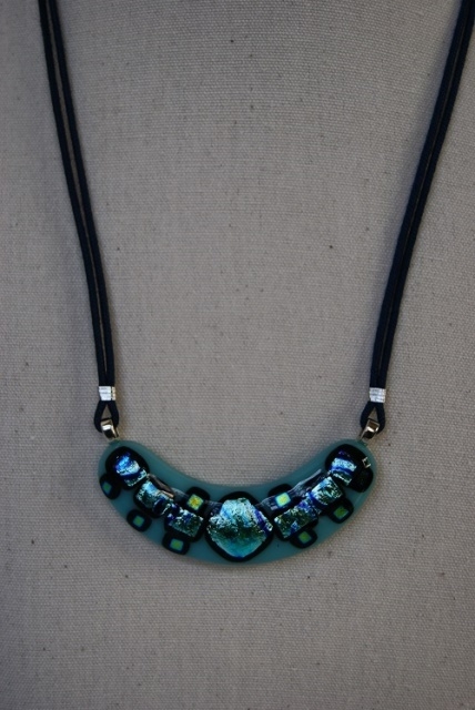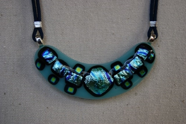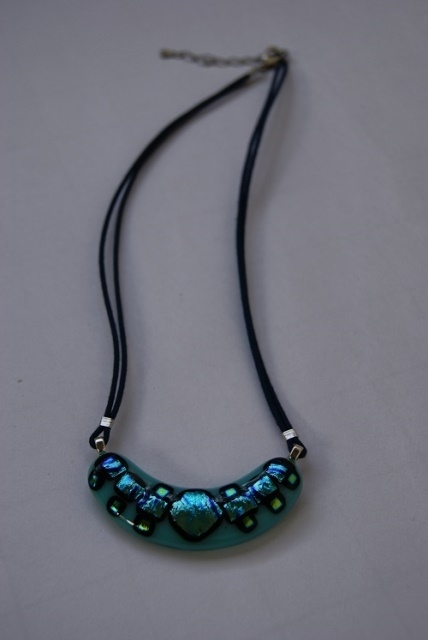 ブルーグリーン地にダイクロガラス(きらきら光るガラス)のブルー、グリーン