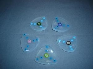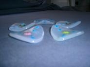 淡い乳白にミルフィオリ(千の花)をのせてデザインしたスプーンレスト。もちろん箸置きでも素敵です。中心の花の色をすべて変えました。お客様のおもてなしに華を添えてみてはいかがでしょうか・・・サイズ 1辺 6cm値下げします。4,000円→2,500円