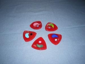 真っ赤な色の、食卓が華やかになりそうなスプーンレスト。それぞれ模様の色は変えてあります。色分けで使う人を決めても使い易いと思います。サイズ 1辺 6cm値下げします。 3,000円→2,500円