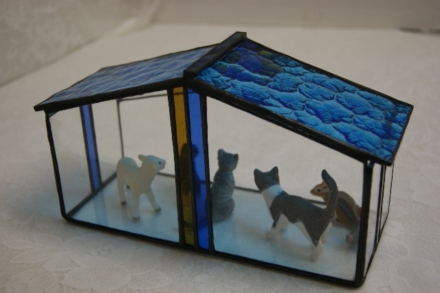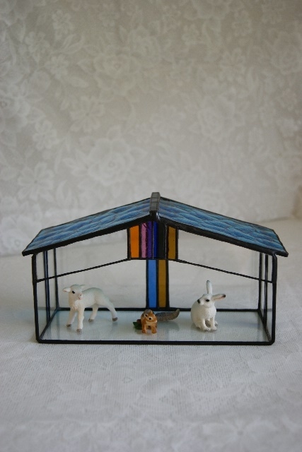 ミニコレクションの為のステンドグラスハウス。より素敵に大切なコレクションを、飾ってくれそうです。埃除けにもなります。