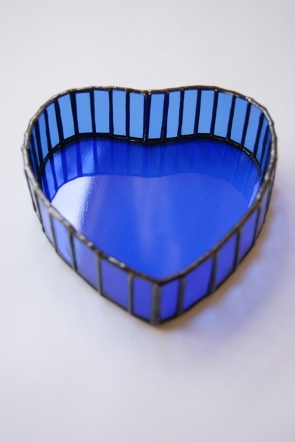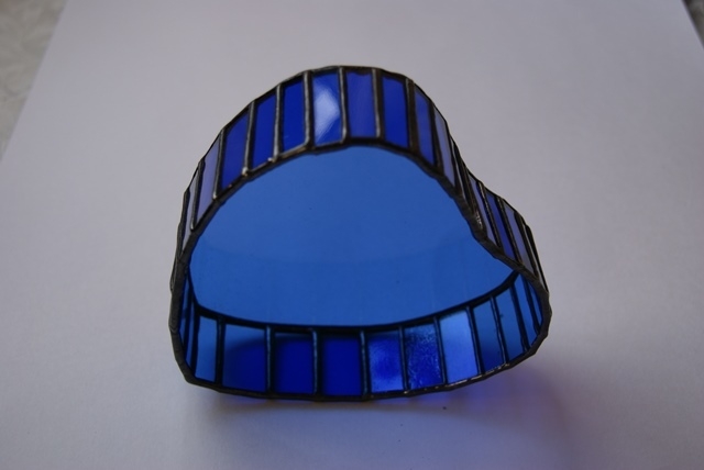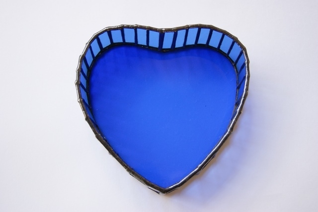 ステンドグラス 小物・ハートの小物入れ (青)送料無料