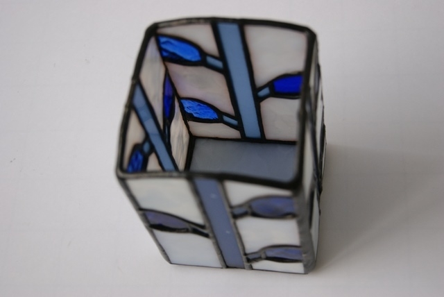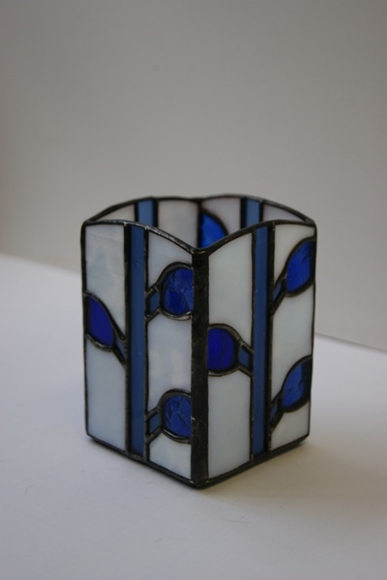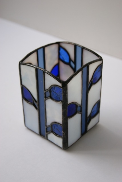 木の枝がささやきかけてくるようなイメージで制作しました。バックになるガラスの表面は白のイリデッセント(七色の光彩)です。基本は鉛筆や小物入れとしてお使い頂けますが、その他色々なお使い方をお楽しみ頂けます。小物ですので価格は抑えられておりますが、手の込んだ格安な一点です。