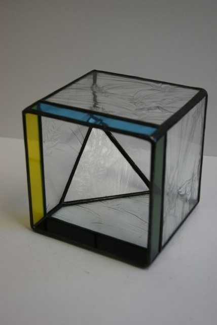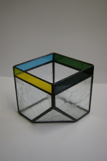 立方体の角を一か所落としたら、おしゃれな小物入れが出来ました。透明なガラスから始まり色ガラスへと、趣味に合わせて選んで頂けるように、作り手も色々な変化を付け楽しみながら制作しました。中に入れるものも、貴重品からドライフラワーや趣味の物まで、センスを発揮して頂けそうです。