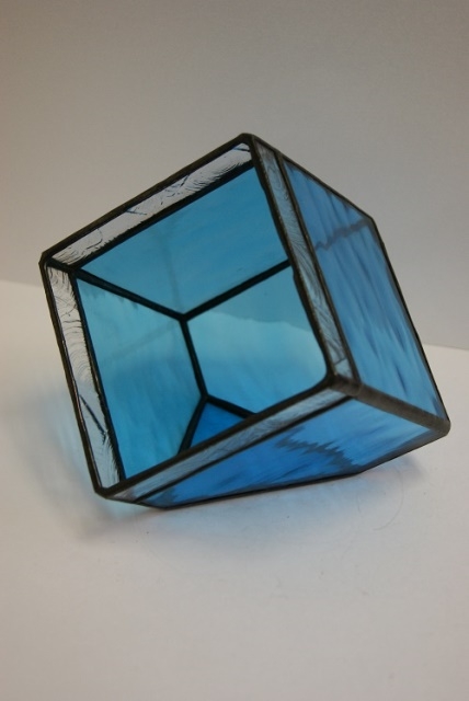 立方体の角を一か所落としたら、おしゃれな小物入れが出来ました。透明なガラスから始まり色ガラスへと、趣味に合わせて選んで頂けるように、作り手も色々な変化を付け楽しみながら制作しました。中に入れるものも、貴重品からドライフラワーや趣味の物まで、センスを発揮して頂けそうです。