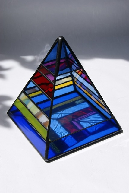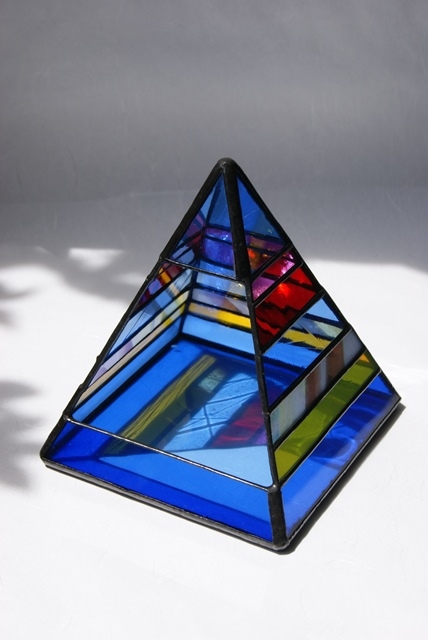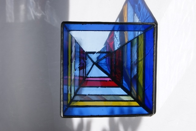 クリアーの色ガラス使用なので、窓辺に置いて日の光を浴びると美しい輝きを放ってくれます。時計、アクセサリー、お金等、小物入れとしても又、サボテン、ミニ植物などを入れても楽しめます。(植物を入れる時は受け皿を御使用下さい。)サイズ 底辺 13cm×13cm、H15cm