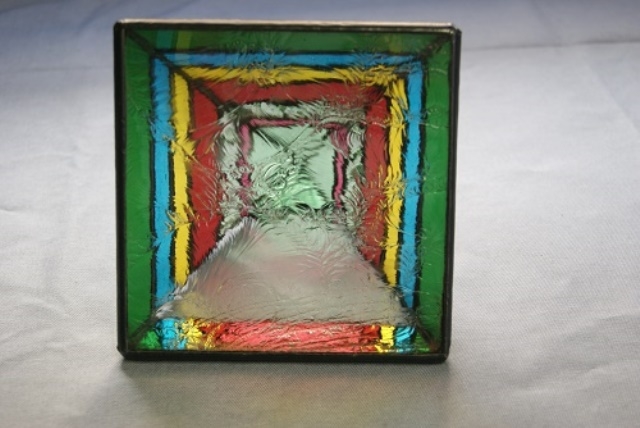 クリアーの色ガラス使用なので、窓辺に置いて日の光を浴びると美しい輝きを放ってくれます。時計、アクセサリー、お金等、小物入れとしても又、サボテン、ミニ植物などを入れても楽しめます。