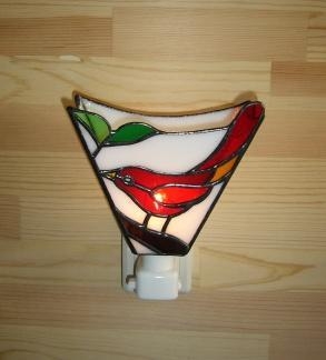 バージョンアップしたおやすみランプ小鳥の一種。白地に真っ赤な鳥がとても可愛く、夢の時間が訪れそうです。電球2種付き。サイズ H 14cm W12cm D6cm。 代引き手数料なし。