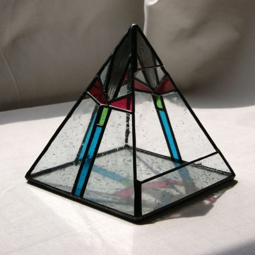 バックガラスは気泡入りクリアガラス、赤、グリーン、青のガラスでアフリカをイメージ。