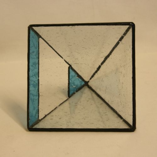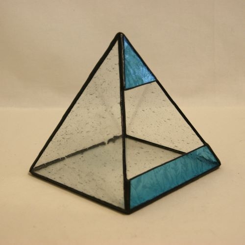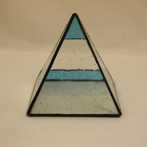 気泡の入ったクリアーガラスと、水色ガラスでシンプルなピラミッドです。
