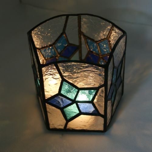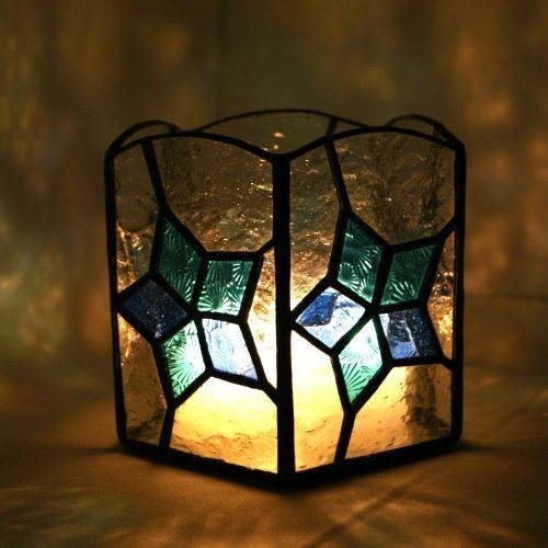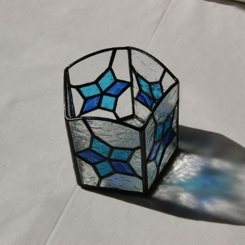 五面体のキャンドルホルダー、各面に手の込んだ星を配しました。