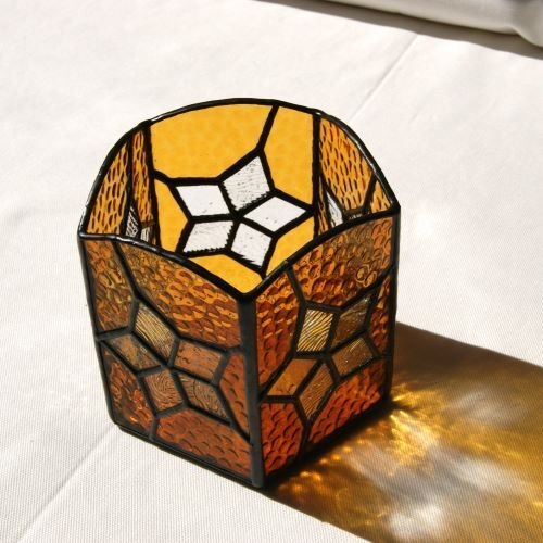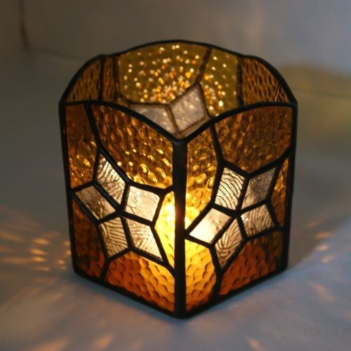 五面体のキャンドルホルダー、各面に手の込んだ星を配しました。
