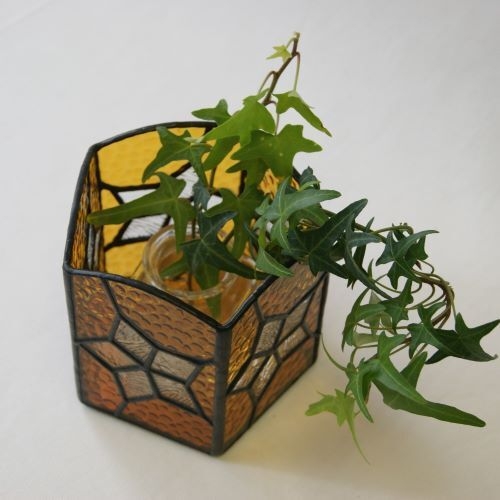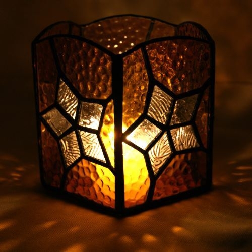 バックガラスは玉模様のアンバーガラス、星は模様入りクリアガラス。
