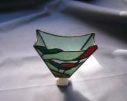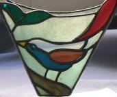 バージョンアップした小鳥の一種。淡いグリーン地に青(濃淡)と赤の鳥。灯りを入れると淡いブルーが白く写ってしまうので消してありますが、点けますと鮮やかな色合いになります。5W、15Wの電球付き。サイズ H14cm W12cm D6cm。 代引き手数料なし。