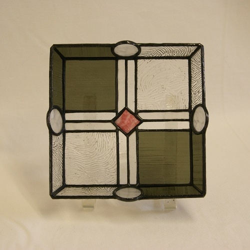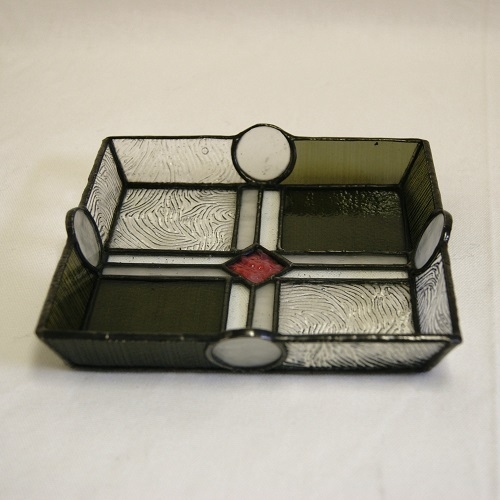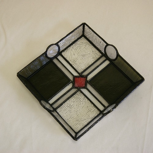 ステンドグラスの正方形角皿(A)