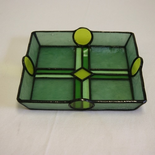 ステンドグラスの正方形角皿(B)