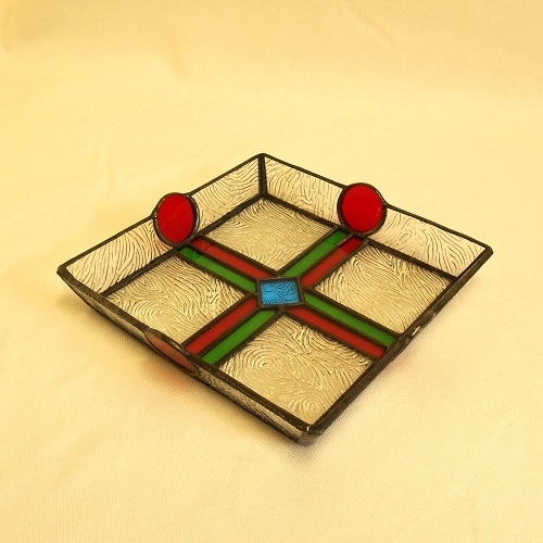 テンドグラスの正方形角皿(D)