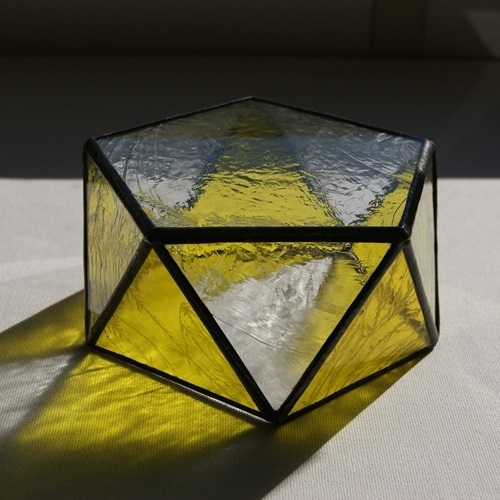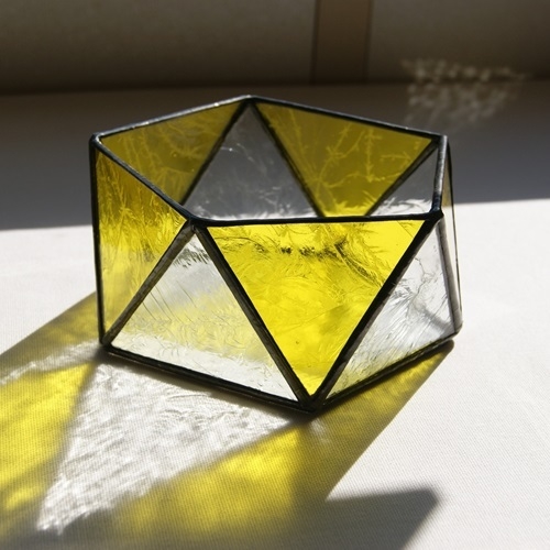 模様入りの透明黄色ガラスと、模様入りクリアーガラスの2種類使用。