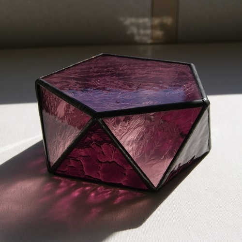 模様入り薄紫の透明ガラスと、模様入り濃い紫の透明ガラス2種類使用。