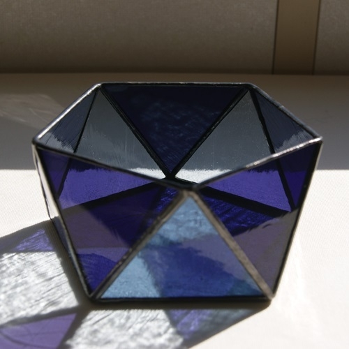 模様入り薄紫の透明ガラスと、模様入り濃い紫の透明ガラス2種類使用。