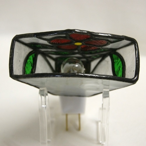 氷様の白いバックに赤いバラ、緑の葉。両側面に一枚の葉が奥行きを出してくれました。