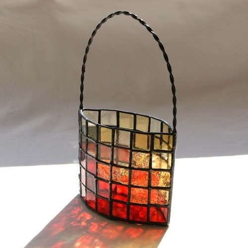 赤系、青系、緑系、オレンジ系のガラスのグラデーションを楽しんで頂きたいです。