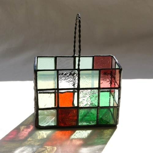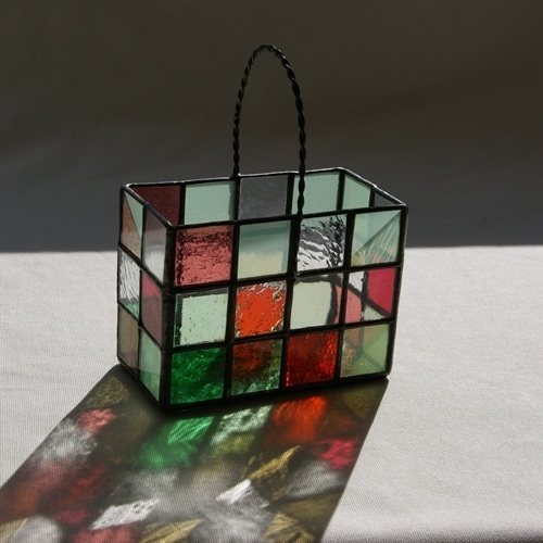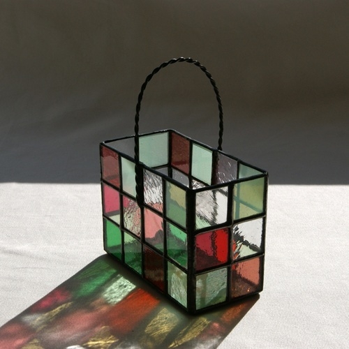 ガラスの花かご小物入れ・(四角)赤