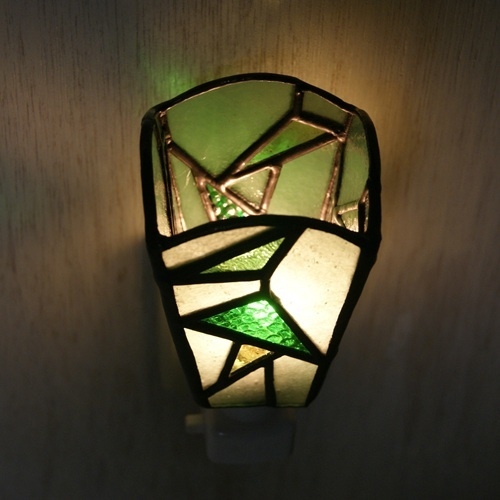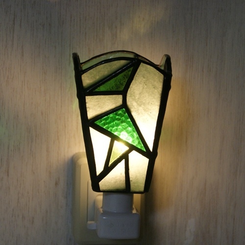 ステンドグラスお休みランプ・三角ダンス緑