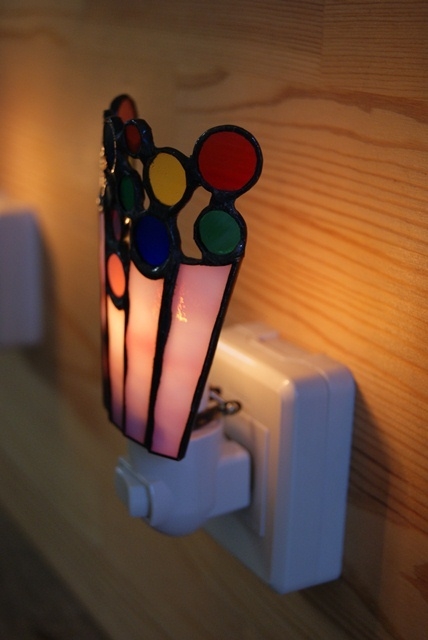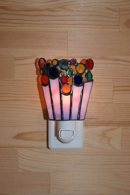 桃色5本の茎に色とりどりの花が咲きました。お部屋が暗くなりましたらスイッチを入れて、可愛い光の花束をお楽しみ下さい。