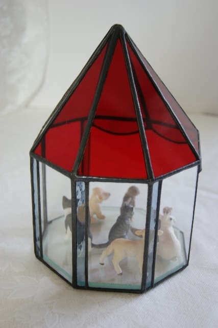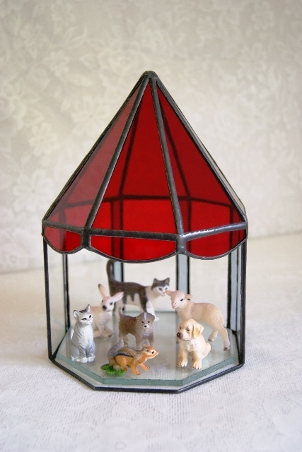 ミニコレクションの為のステンドグラスハウス。より素敵に大切なコレクションを、飾ってくれそうです。埃除けにもなります。 八角錘の屋根を持った、八角形のハウスです。屋根の高さがありますので、大きめのコレクションに良いと思います。