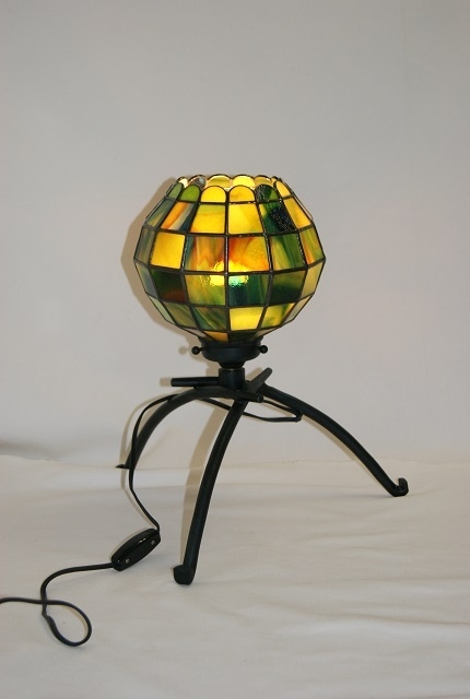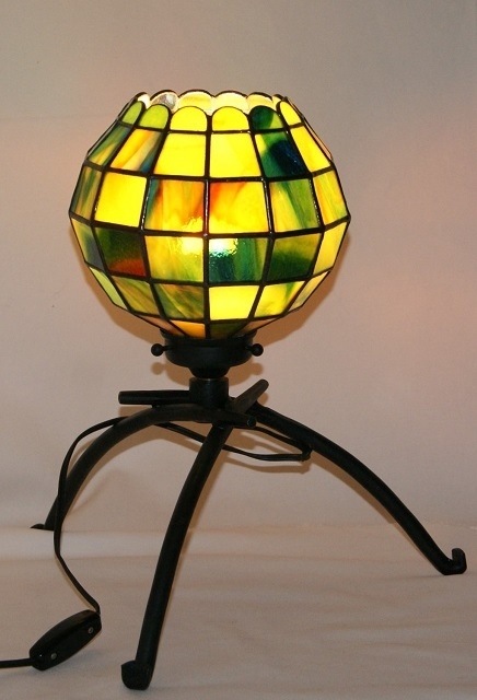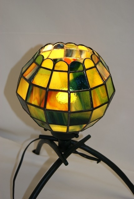 6段積みの14面体ランプ、84ピースの台形ガラスを積み上げたランプです。