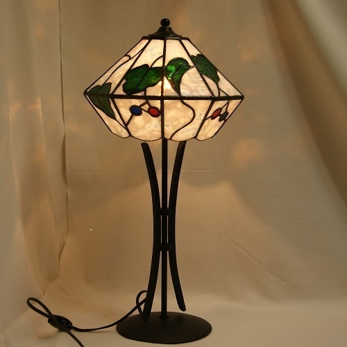 シンプルなデザインのバックの白、葉のグリーン、実の青と赤紫のコントラストを味わって頂きたい一品です。