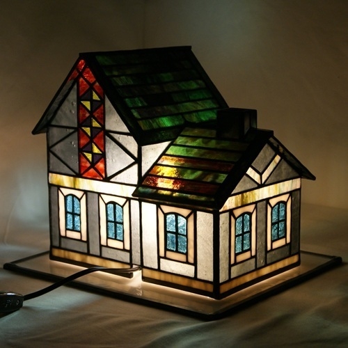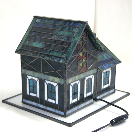 屋根ガラスは緑を基調に赤、紫、黄色、が入り交じったリンズガラス。