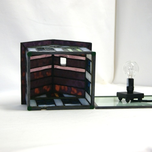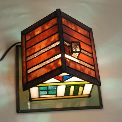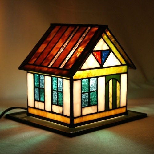 ステンドグラスミニハウスランプ( C )赤紫の屋根