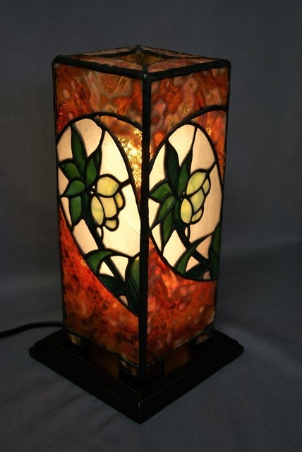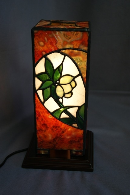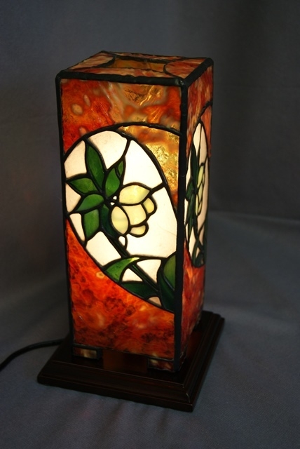 深い溝が刻まれた美しい赤色のガラスですが、手ではカット出来ず機械に頼って切る事しか出来ませんでした。それでも溝から割れてしまい大変苦労しましたが、その分美しい輝きを放ってくれました。ひっそりと咲くクリスマスローズをひときわ引き立ててくれます。(このガラスの使用はこれ限りです。)