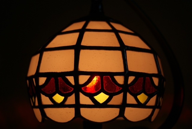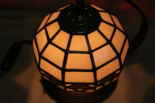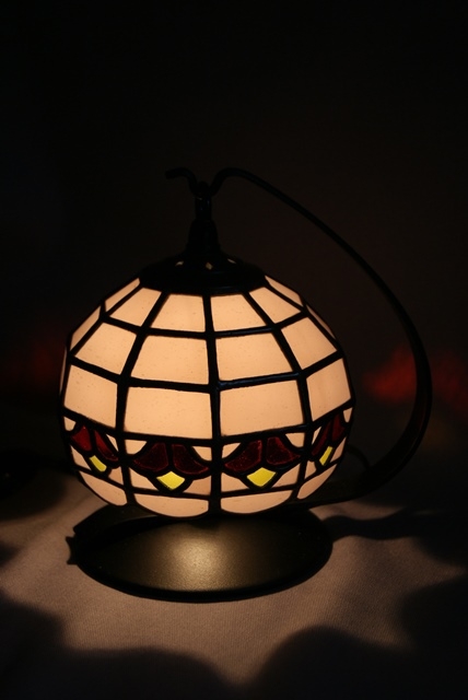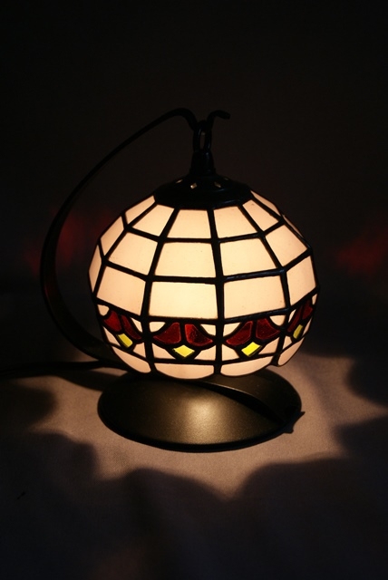 小さくてかわいいサイズのミニランプ。アンティークの薄赤紫に赤い花を入れました。<br>ミニサイズは制作に苦労します。工程は大きくても小さくても同じです。紙風船のように、ふんわりとした感じがミニならではです。さり気なく灯して頂きたいランプです。