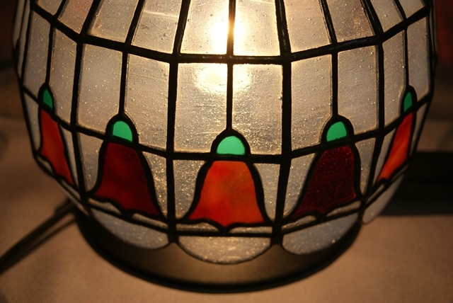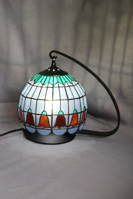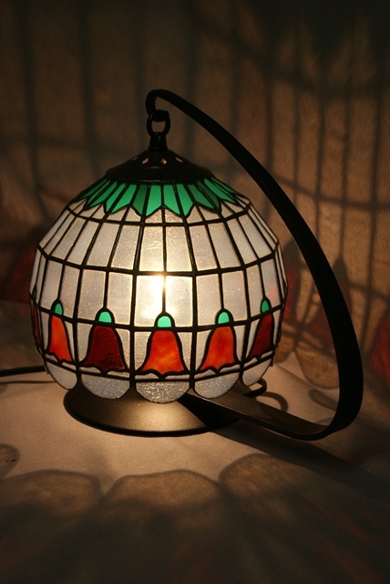 在庫処分。長方形のガラスを横に14面、縦に5段積み上げたオーソドックスなランプです。通常はこれで仕上げの所、拘って花模様を入れてしまった為、値段を付けられず保管していたものを、今回ミニランプの10面を制作していくことに当たり、思いきっての整理です。半透明なので、電球でも綺麗に輝きますが、LED電球の蛍光色が、思わぬ光の世界を創ってくれました。このお値段では二度と出ないランプです。サイズ 全体 W31cm,H26cm モールド 直径20cm、 H17cm 電球 LED, 40Wでんきゅう2個付き