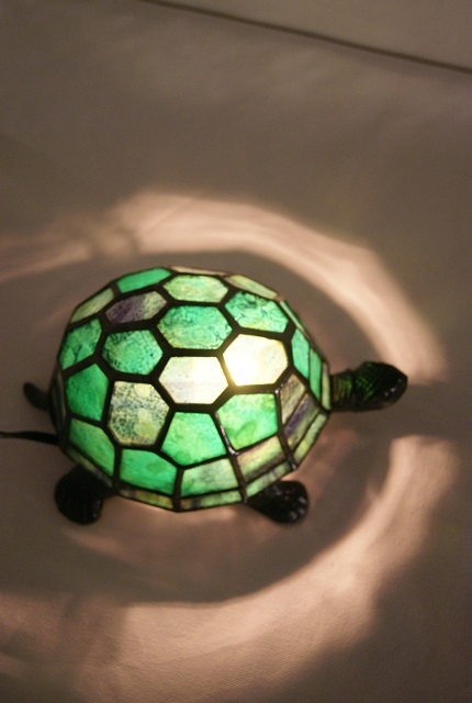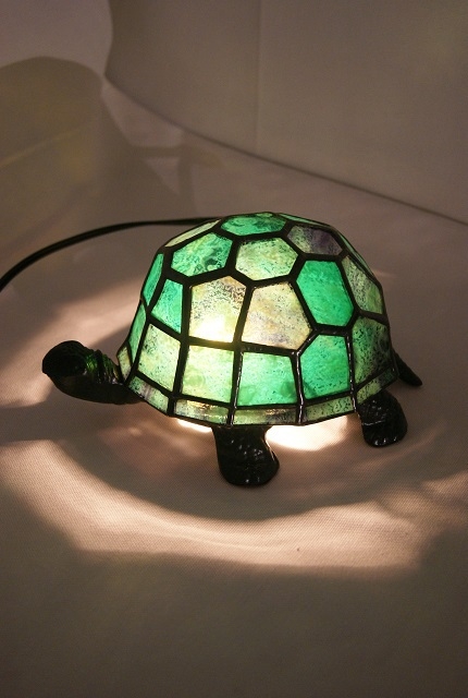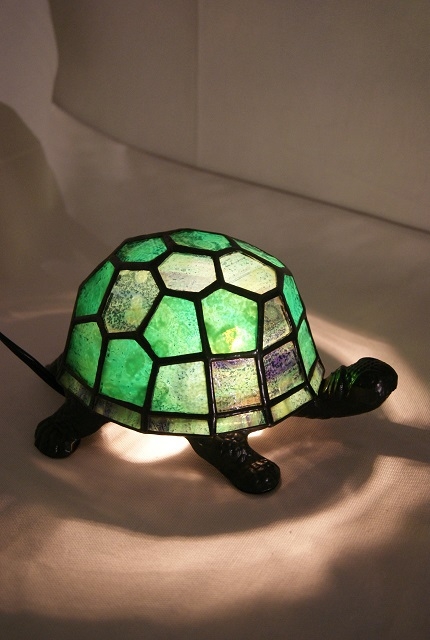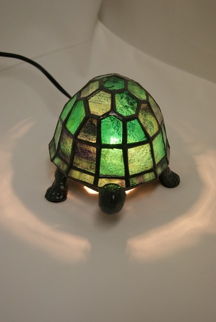 人気の亀ランプが新しくなりました。やや小さくなりましたが、金属部分はどっしりした重みがあります。金属の高騰により、亀ランプにも影響が出てきました。以前の価格設定が困難となりましたので、今後制作出来るかどうか分かりません。この価格での販売は最後となりそうです。今では手にすることも出来なくなった、手造りガラス(リンズ)の緑亀です。緑色をベースにいろいろな色とリングモトルが浮かび上がり、美しい明かりを放ちます。