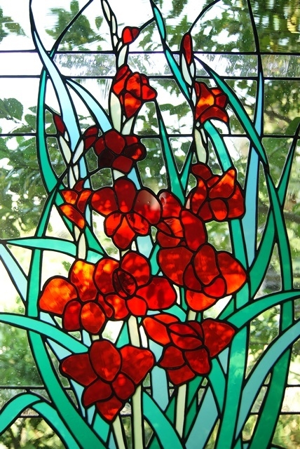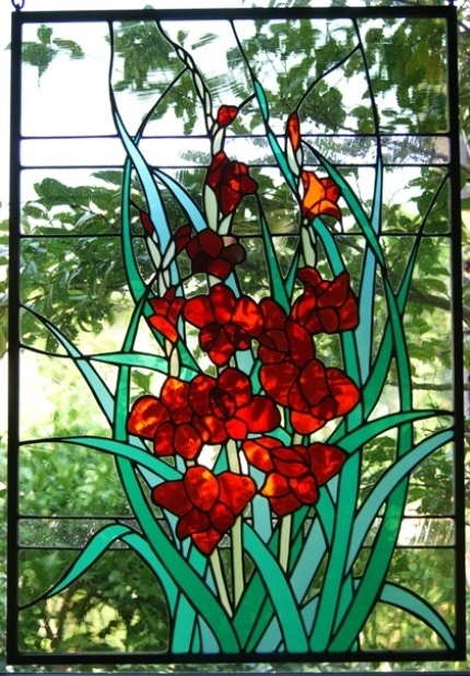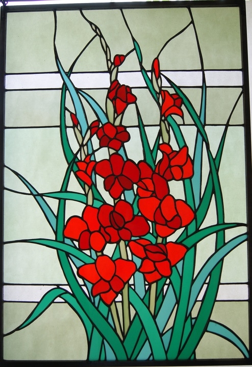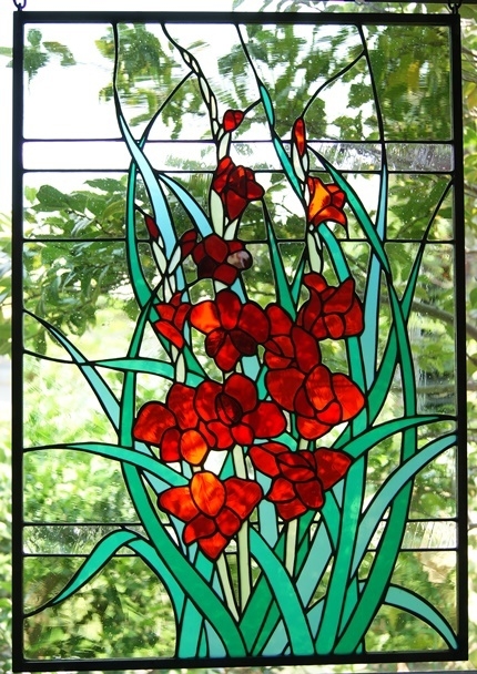 花だけにスポットを当てて、ステンドグラスで表現した2作目。簡単に窓に掛けて楽しめるように制作していますが、明り取りの窓やドアーに入れても楽しめます。(窓に入れるときは、チェーン掛けとチェーンは外します)その旨お申し付け下さい。