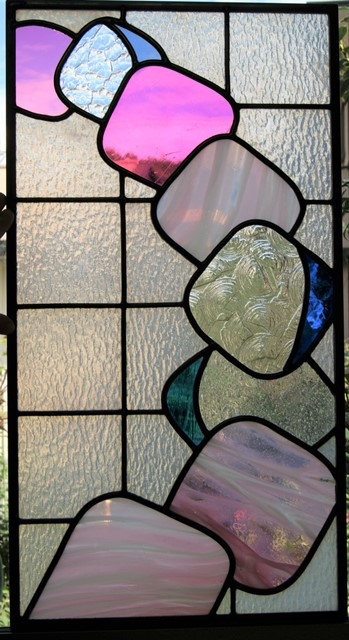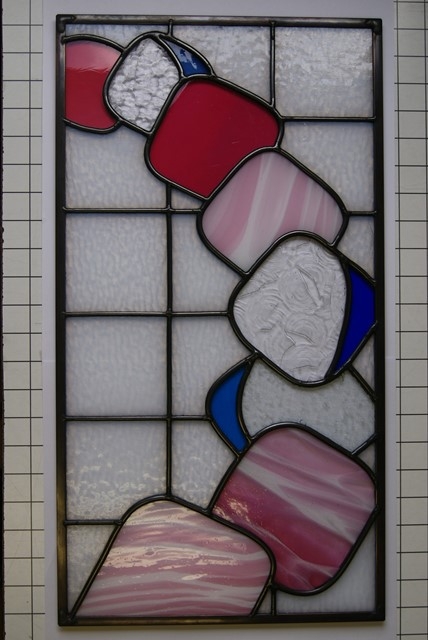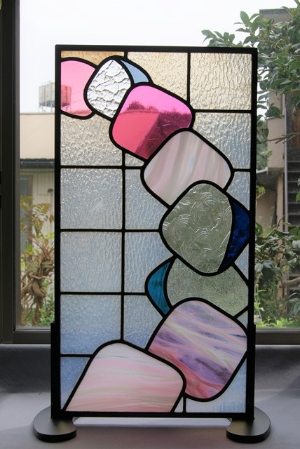 窓に組み入れなくても、鉄のパネル立てに入れて窓辺等に置いて楽しめます