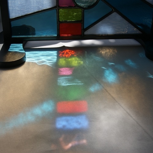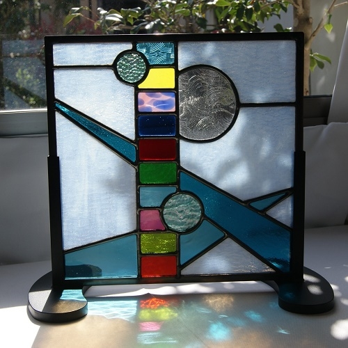 小さめパネル。鉛線で1ピース、1ピース組み上げ、真鍮枠で仕上げたパネルです。様々なドアーの灯窓、インテリア窓、として組み込めます。又、建物の明り取りや小さな窓としても取り付ける事が出来ます。大きな窓用は高価になってしまう為、「なかなかステンドグラスを入れられない」という人の為にお求めやすい価格でお創りしました。同じデザインで何枚も欲しい、色違いで欲しい、と言うご要望にも対応致します。
