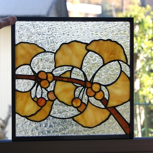 バックは銀杏を生かしてくれる様に、余り主張しないクリアガラス(模様入り)にしました。